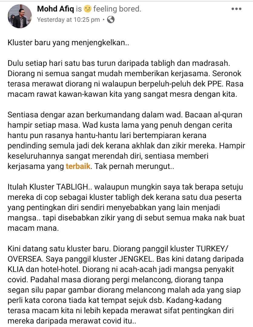 Beliau berkata, gaji pegawai awam juga patut dikurangkan, selain menambah bahawa penjimatan itu boleh digunakan bagi membantu golongan miskin yang paling terkesan oleh pelaksanaan perintah kawalan pergerakan (PKP).